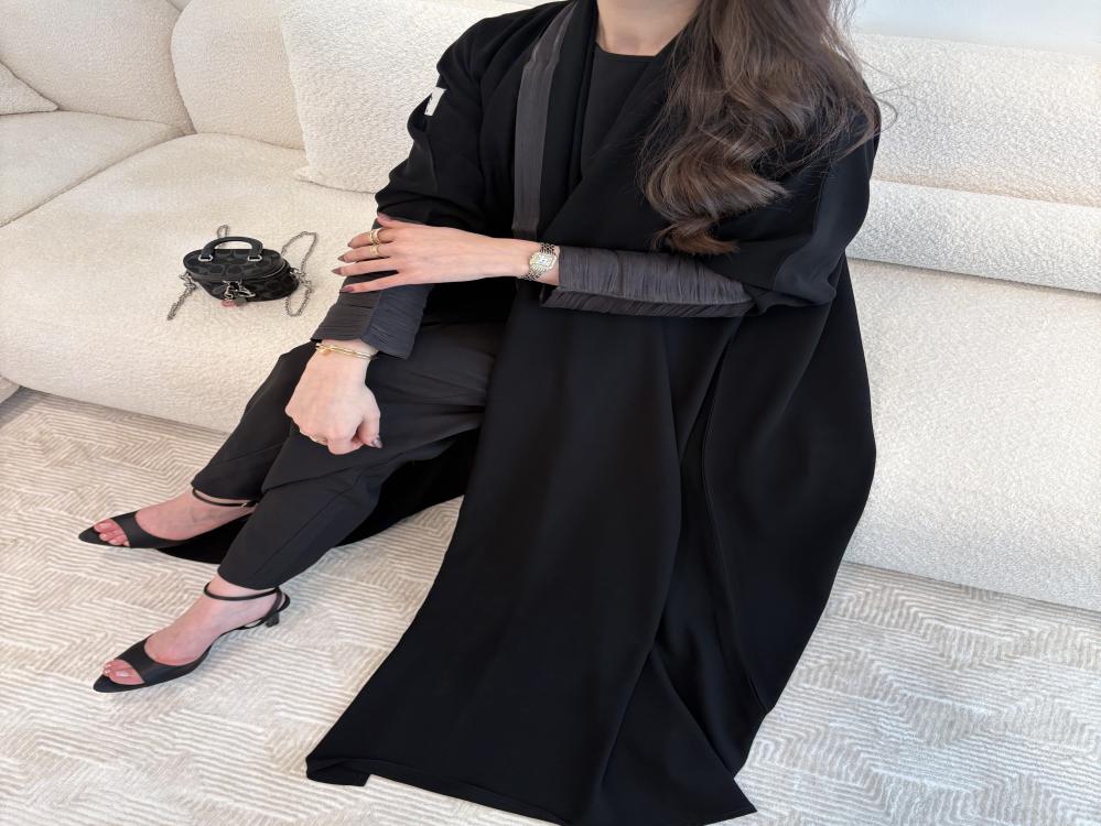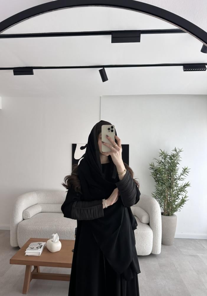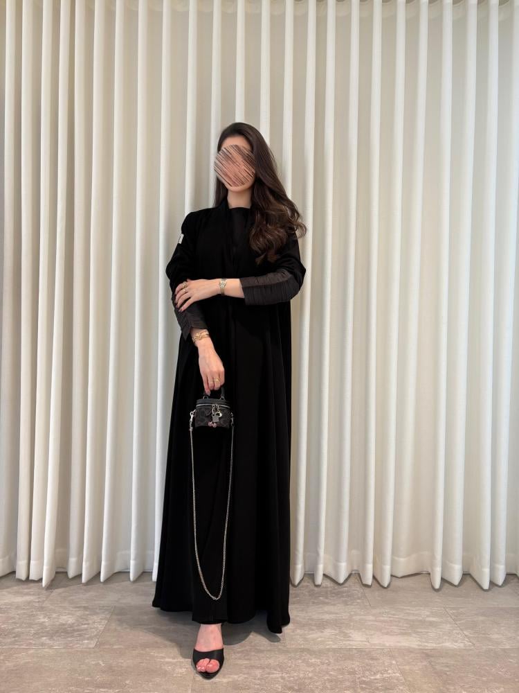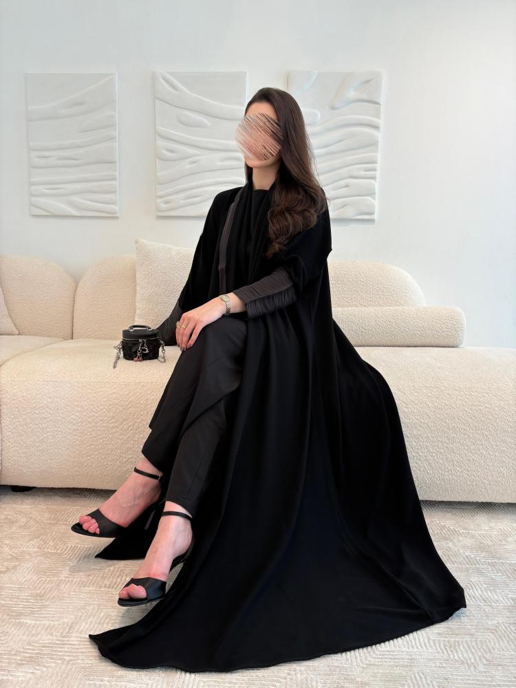 التفاصيل : قماش كريب ملكي كوري اسود ، الكم اورقنزا حرير اسود ، قصة العباية كلوش .يمكن تغيير قصة العباية.مدة التوصيل من 7-14 ايام عمل.