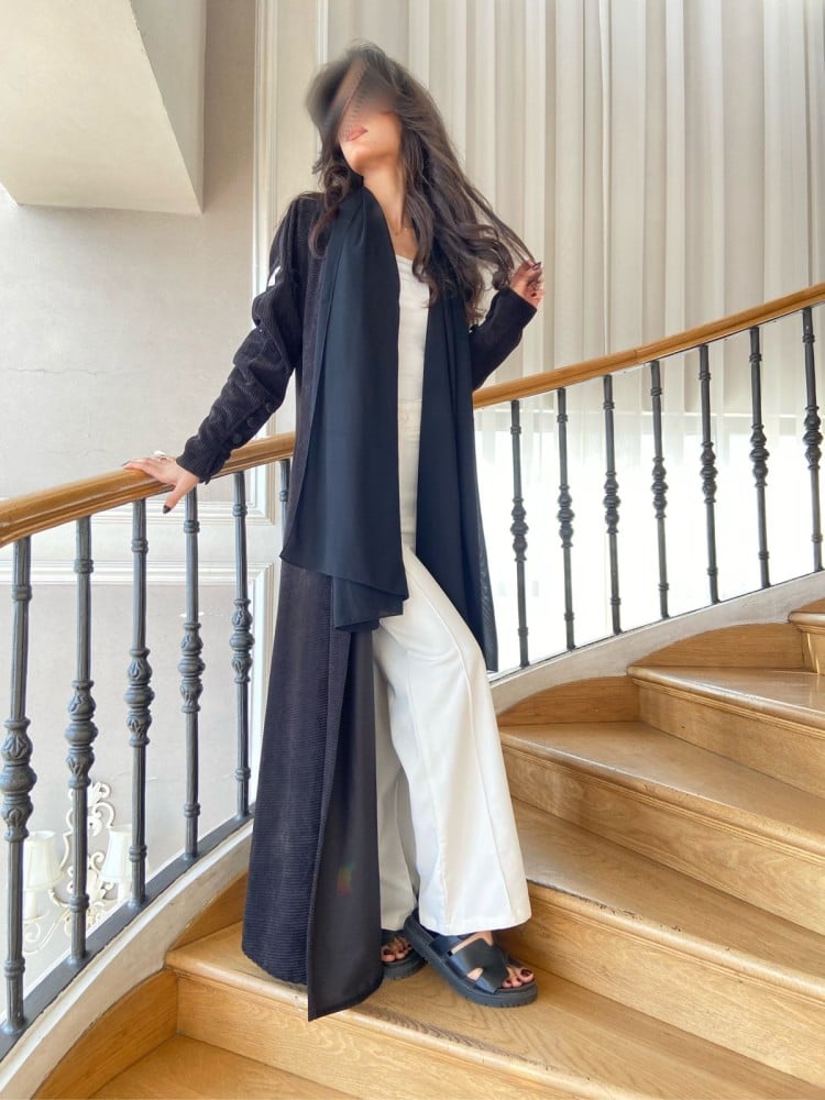 التفاصيل : قماش شامواه مخطط اسود ، طرحه سوداء ساده، قصة العباية ربع كلوش. مدة التوصيل من 7-14 يوم عمل.